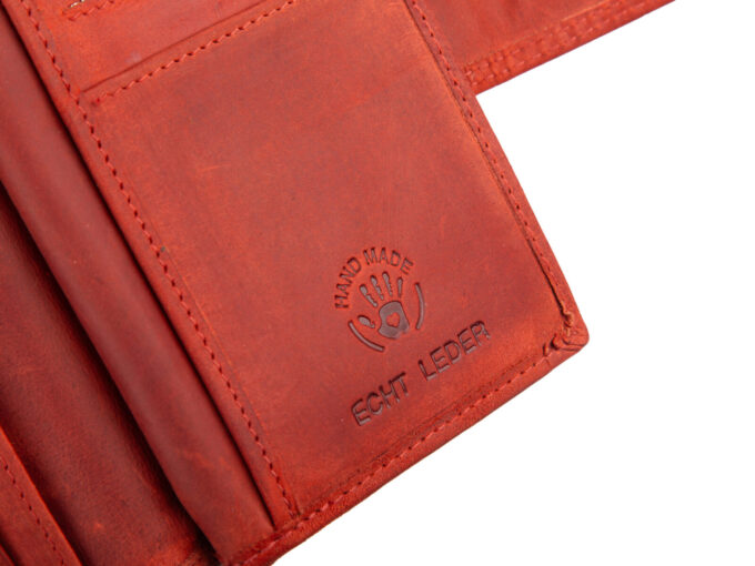 - Portfel szyty ręcznie z wysokogatunkowej, grubej i surowej skóry naturalnej.