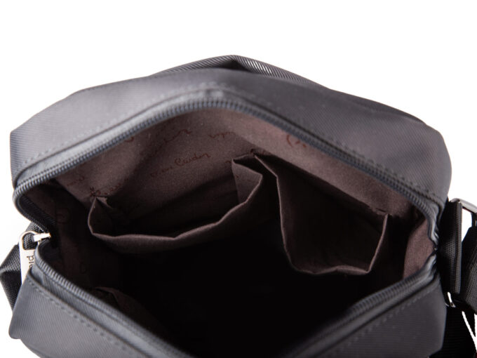 - Popielata torba męska na ramię renomowanej marki Pierre Cardin w wygodnym, średnim rozmiarze, idealna na co dzień.