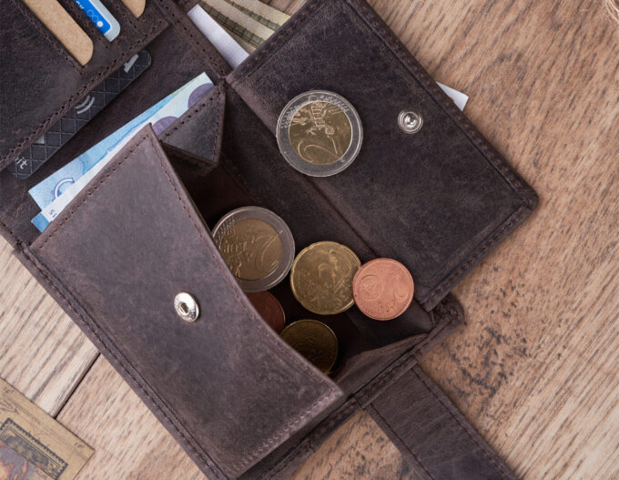 - Kieszeń na monety zamykana na patkę z mocnym, metalowym zatrzaskiem.