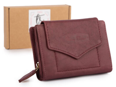 Średni skórzany portfel damski Money Maker w kolorze burgundowym