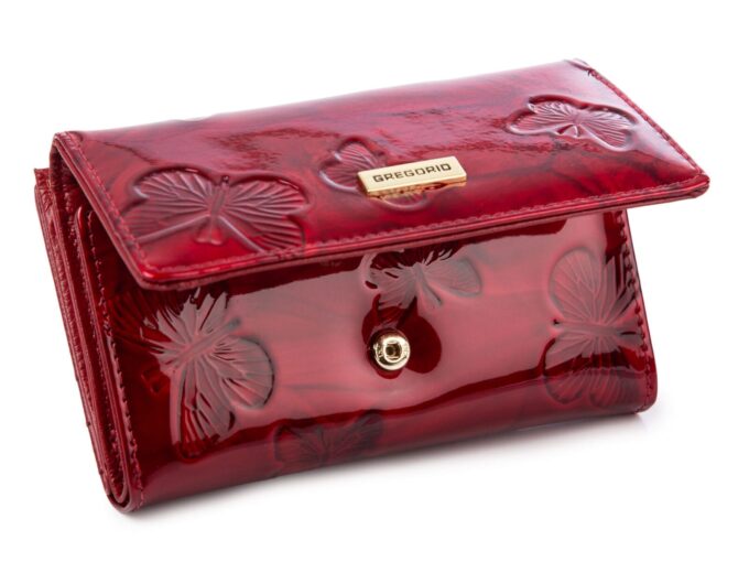Portfel damski czerwony lakierowany w motylki z RFID Gregorio