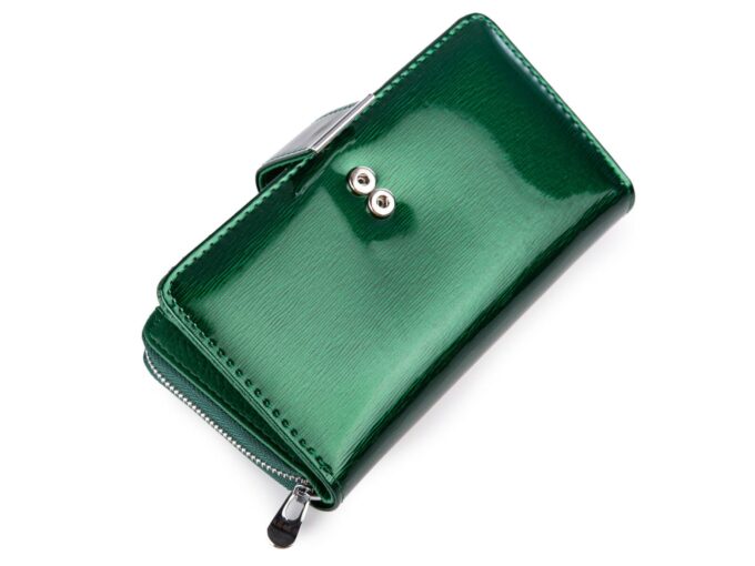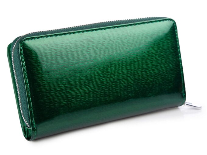 Duży portfel damski lakierowany butelkowa zieleń Jennifer Jones