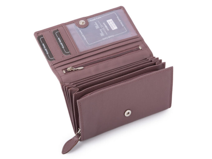 - Duży, portfel damski niemieckiej marki Money Maker w niebanalnym kolorze mauve – połączeniu fioletu i brązu.