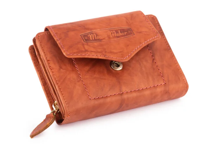 Portfel damski z miękkiej skóry naturalnej jasnobrązowy Money Maker