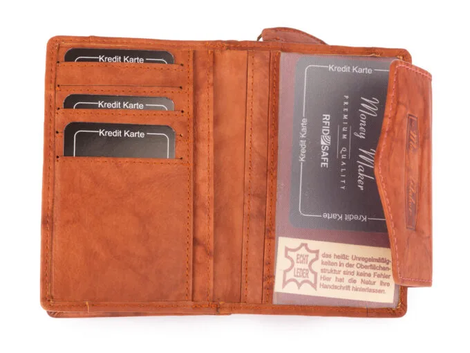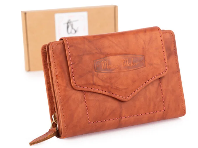 Portfel damski Money Maker z miękkiej skóry naturalnej RFID Koniakowy Brąz