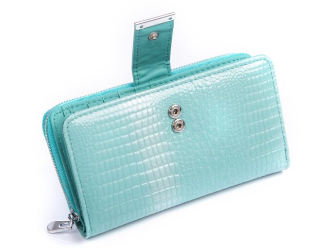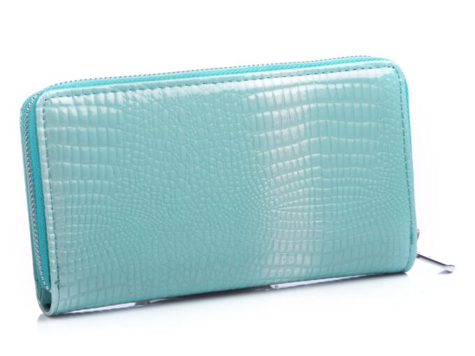 - Duży jasnoturkusowy portfel damski.