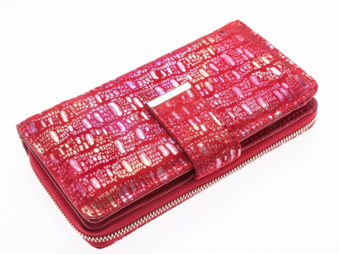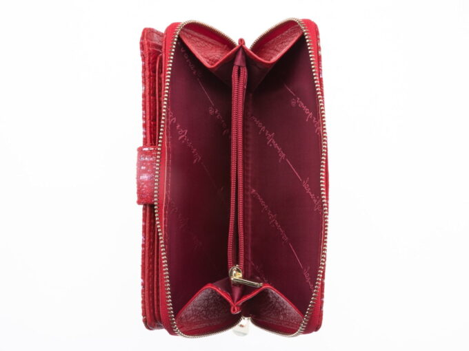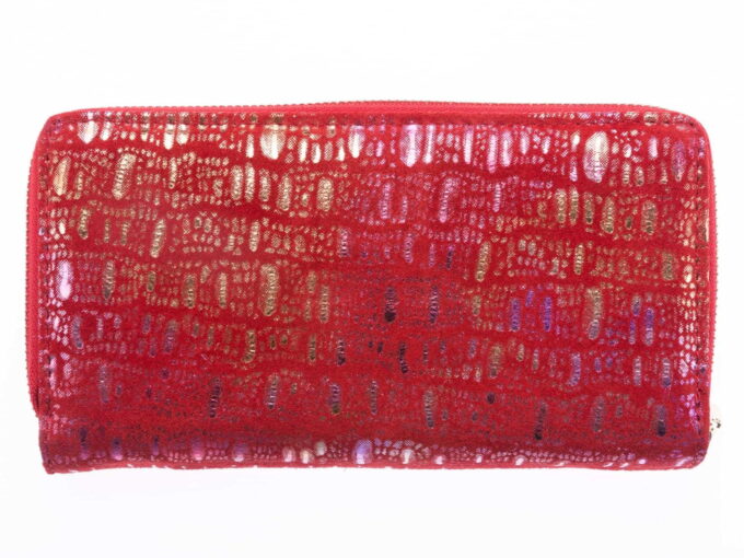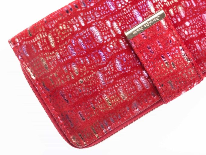 Portfel damski skórzany czerwony z brokatem duży
