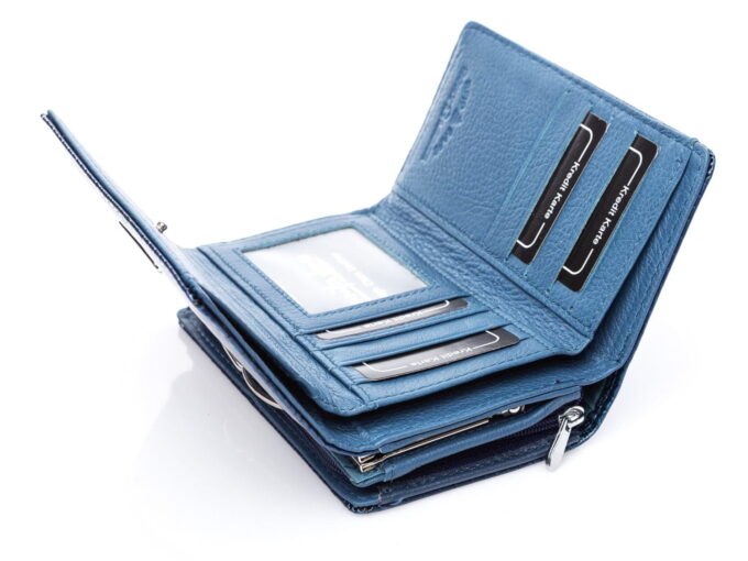 - Portfel z ochroną kart RFID. Blokuje ona dostęp do kart zblizeniowych umieszczonych wewnątrz portfela.