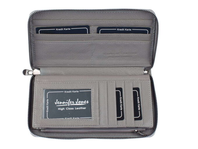 Kategorii: Duże portfele damskie, Matowe portfele damskie, Portfele damskie, Portfele damskie Jennifer Jones, Portfele damskie typu piórnik, Portfele damskie w pudełku, Szare portfele damskie