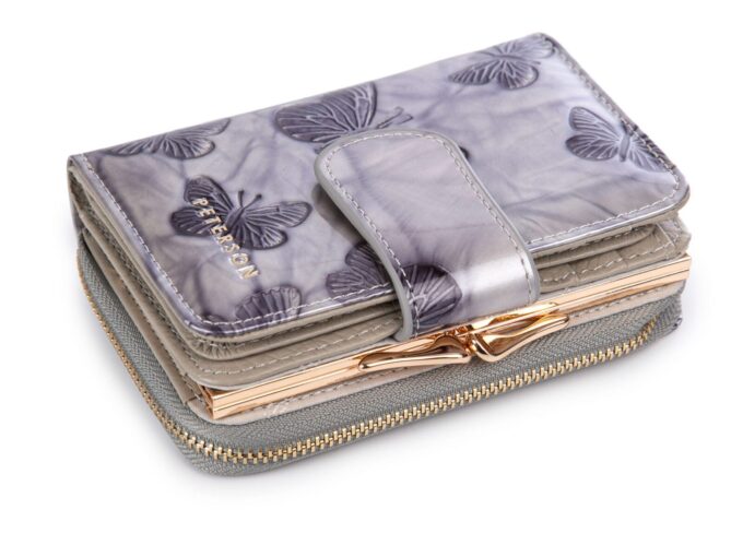 Portfel damski srebrny w motylki z dwoma kieszeniami na monety PETERSON