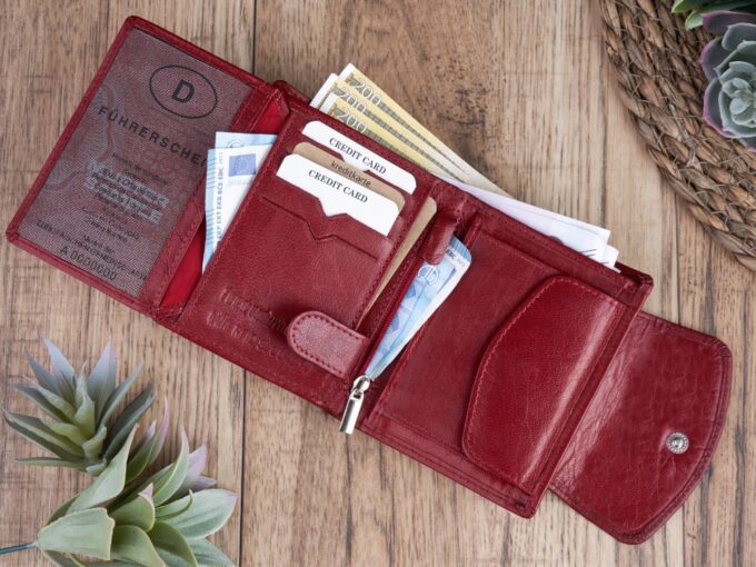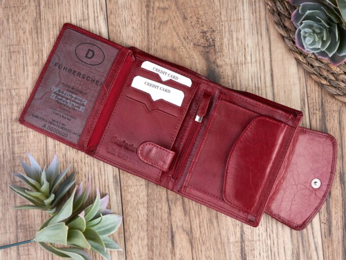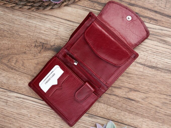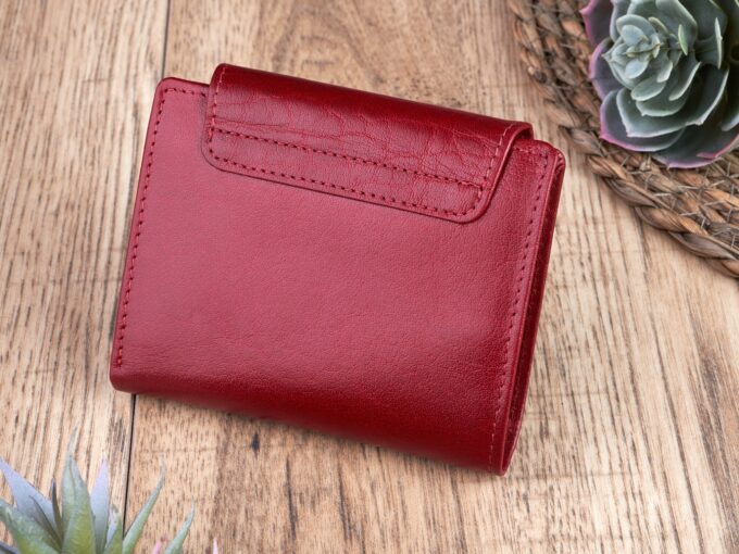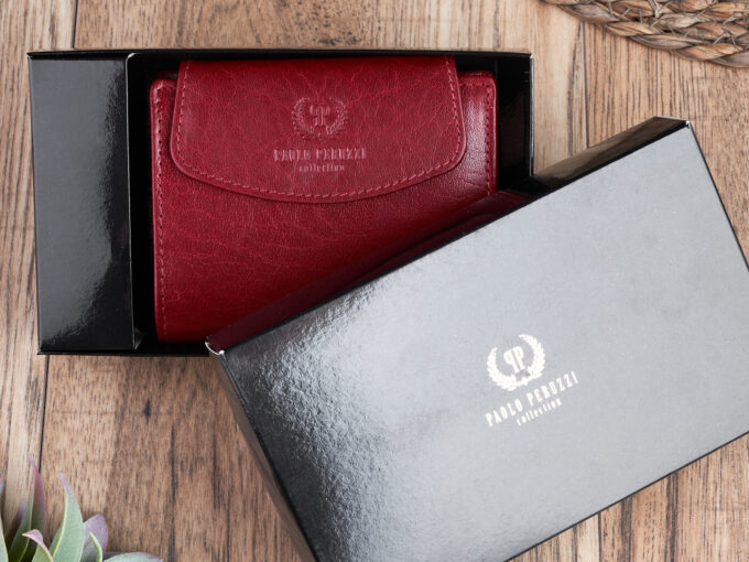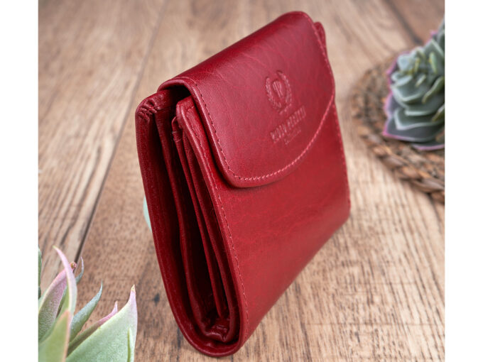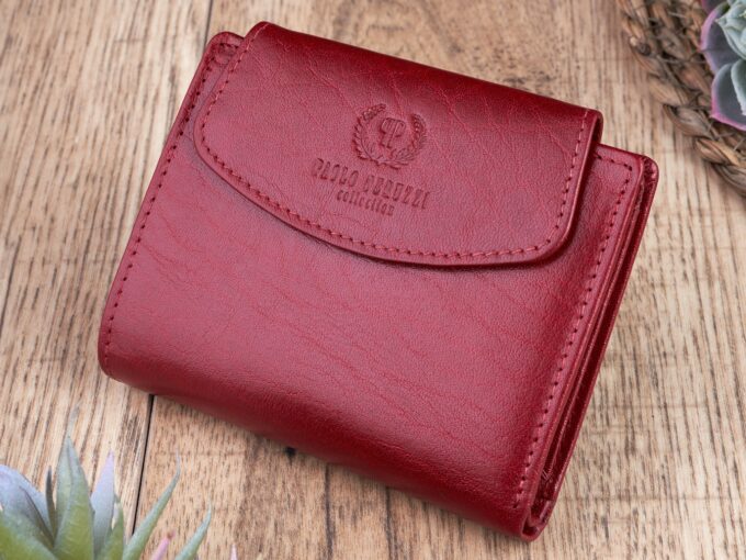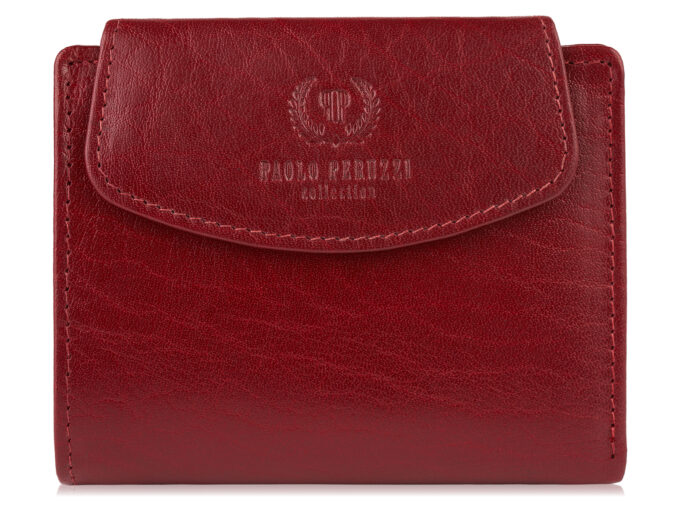 • Portfel damski średni z gładkiej skóry naturalnej RFID czerwony Paolo Peruzzi