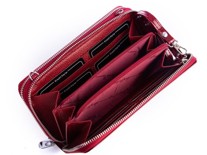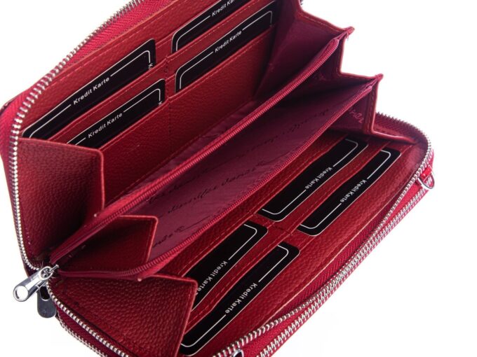 - Czerwone portfele damskie, Czerwone torebki damskie, Duże portfele damskie, Jennifer Jones, Kopertówki, Portfele damskie Jennifer Jones, Portfele damskie typu piórnik, Portfele damskie w pudełku