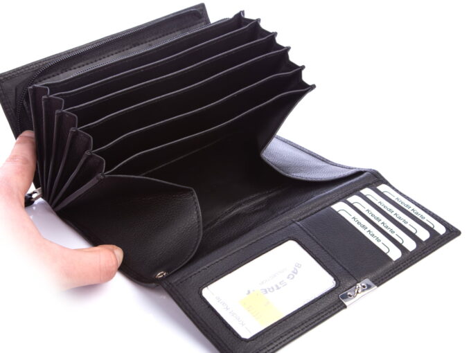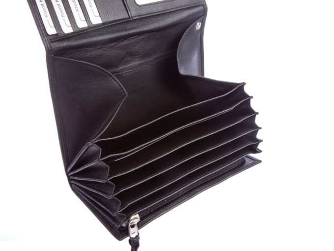 - Dodatkowa, podwójna kieszeń zapinana jest na zamek błyskawiczny, wewnątrz portfela.