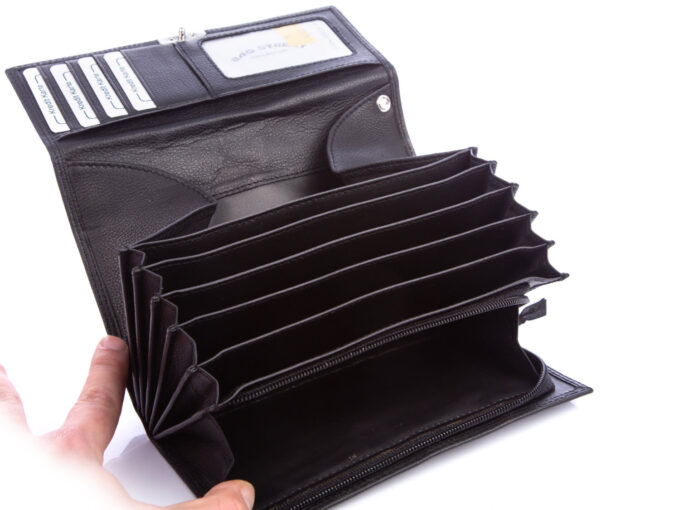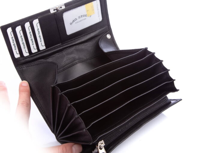 - Wyposażony jest w 5 pojemnych przegród na banknoty. Dzięki temu można wygodnie rozdzielić nominały.