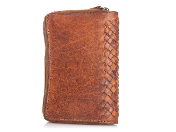 Brązowy, pionowy portfel skórzany z plecionym grzbietem. Stylizowany na retro/vintage ze skojarzeniami góralskimi / indiańskimi. Solidnie wykonany z wysokiej jakości, grubej skóry naturalnej. Zapewnia dużo miejsca na karty, dokumenty i banknoty. Wyposażony jest w przestronną kieszeń na monety zapinaną na suwak. Pełna specyfikacja ⬇