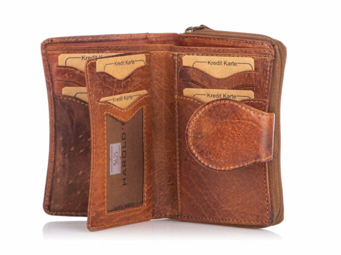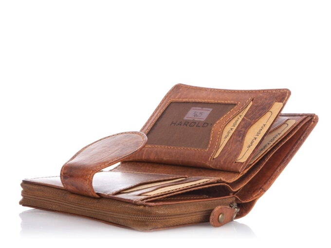 - Portfel skórzany w stylu vintage niemieckiej marki Harold’s – J Jones.