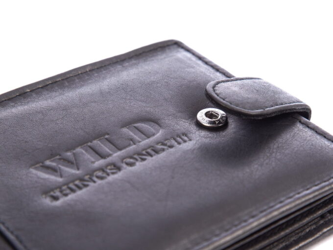 Portfel męski poziomy skórzany z zapięciem czarny WILD