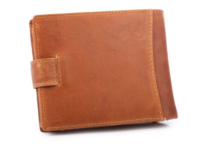 Portfel męski skórzany brązowy zapinany na paseczek z zatrzaskiem RFID