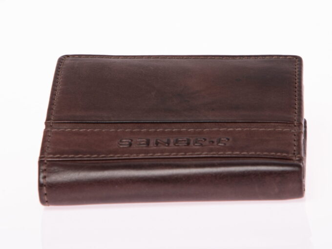 - Skórzany portfel męski w kolorze ciemnobrązowym.
