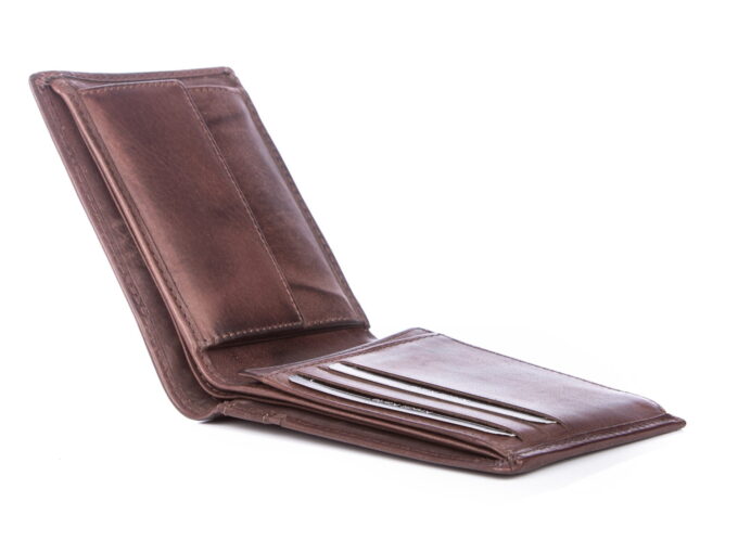 - Portfel posiada blokadę „antykradzieżową” RFID, blokuje ona dostęp do znajdujących się w portfelu kart do płatności zbliżeniowych z zewnątrz.