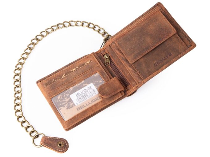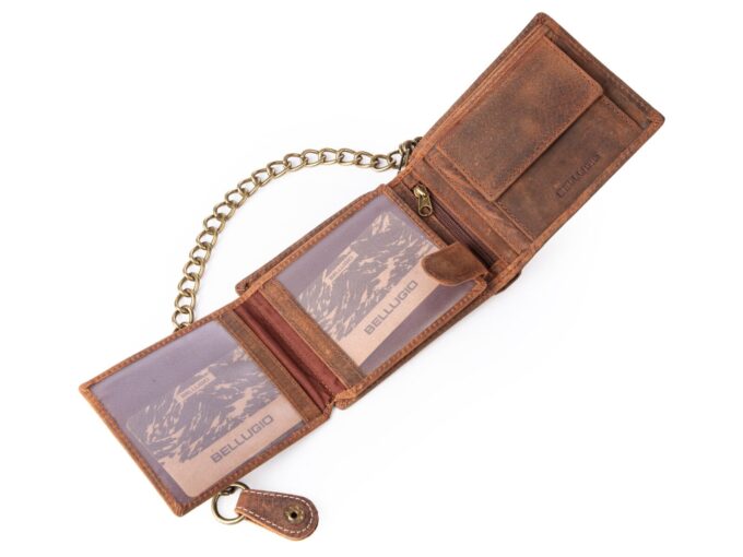 Portfel męski skórzany z grubym łańcuchem bikerski z RFID Bellugio