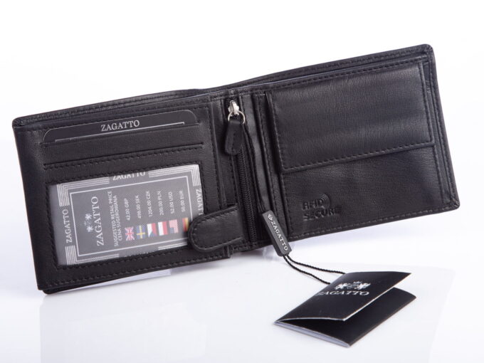 - Czarny portfel męski polskiej marki ZAGATTO.