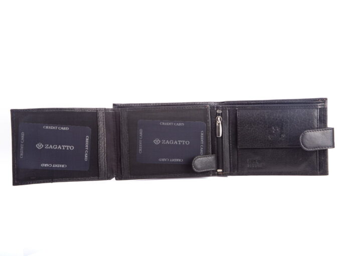 Portfel męski skórzany ZAGATTO czarny poziomy z zapięciem