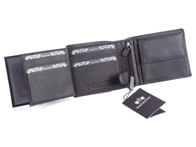 - Czarny portfel męski polskiej marki ZAGATTO.