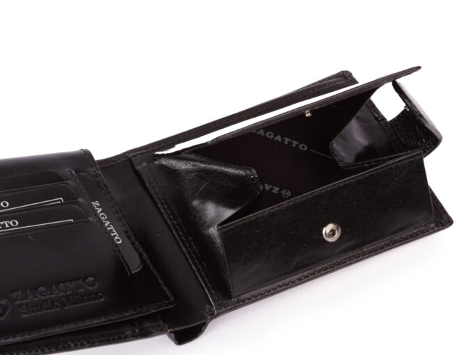 • Elegancki czarny portfel męski skórzany Zagatto z zabezpieczeniem RFID