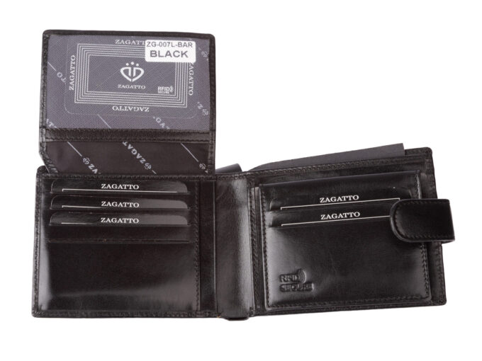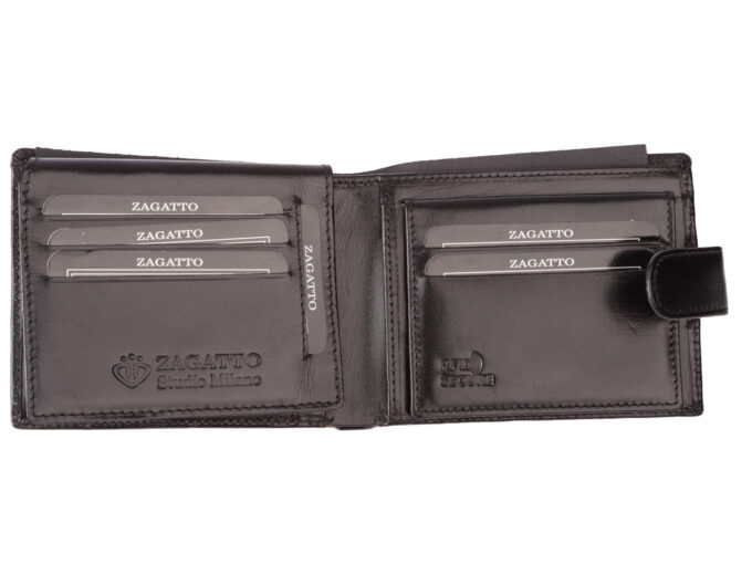 Elegancki czarny portfel męski skórzany Zagatto z zabezpieczeniem RFID