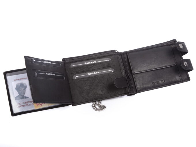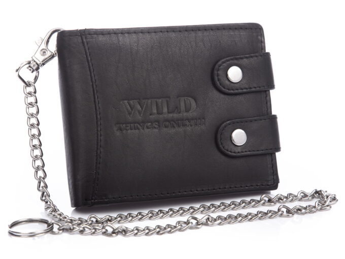 - Czarny portfel męski z łańcuchem niemieckiej marki WILD Things Only.