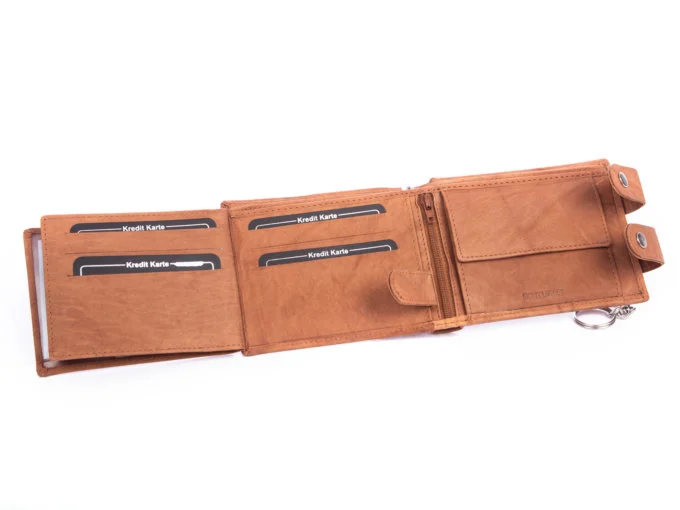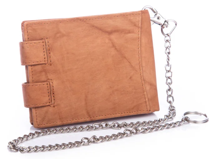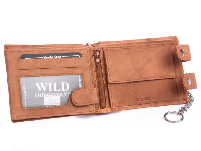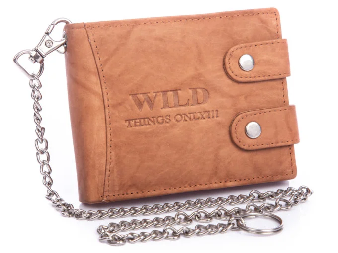 - Jasnobrązowy portfel męski z łańcuchem niemieckiej marki WILD Things Only.