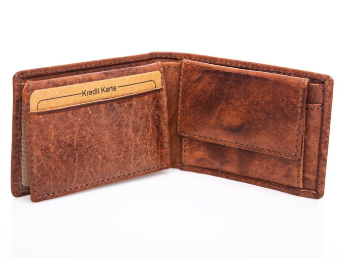 - Portfel wykonany jest z wysokiej jakości skóry naturalnej, stylizowanej w procesie produkcyjnym na „postarzaną” – w stylu vintage,