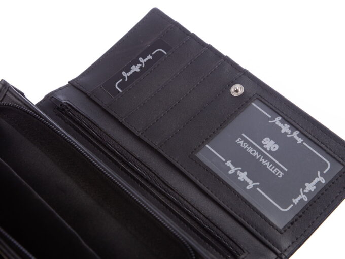 - Duży elegancki portfel damski niemieckiej marki Jennifer Jones w pastelowym kolorze czarnym.