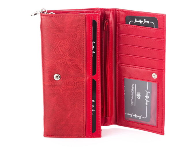 Prezentowany model to połączenie modnego wzoru i dużej pojemności w atrakcyjnym czerwonym kolorze. Prezentowany portfel marki Jennifer Jones wykonany został z wysokiej jakości skóry ekologicznej. Dzięki temu jego cena jest naprawdę bardzo atrakcyjna. Pomimo tego, że portfel jest tani to jakość jego wykonania jest zdecydowanie wysoka.