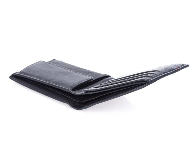 - Wyposażony jest w zabezpieczenie, znajdujących się w środku portfela, zbliżeniowych kart płatniczych – tzw. RFID. Jest to rozwiązanie chroniące przed próbami dokonania nieautoryzowanych transakcji przez złodziei.