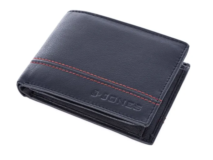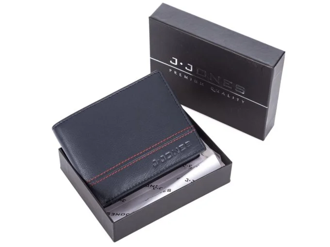 Poziomy portfel męski skórzany J Jones trifold RFID granatowo-czerwony