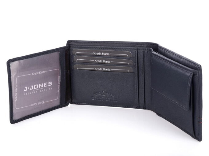 Poziomy portfel męski skórzany J Jones trifold RFID granatowo-czerwony