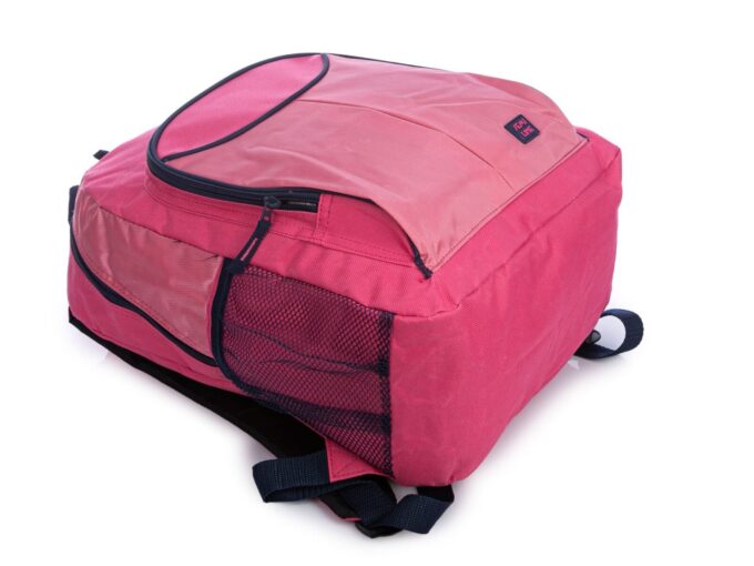 - Po obu stronach plecaka znajdują się kieszonki z siateczki np. na napój i prowiant na drugie śniadanie.