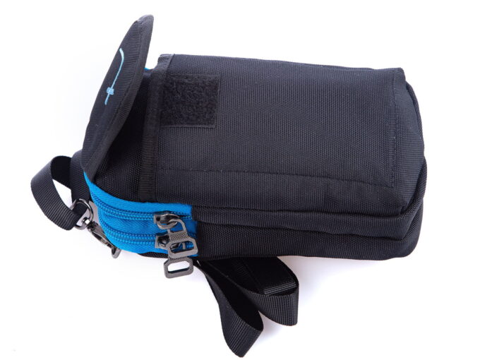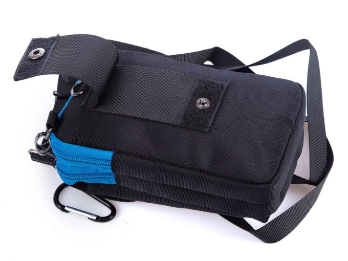- W zestawie znajduje się także karabińczyk do przypięcia dodatkowych akcesoriów lub podpięcia saszetki do uchwytu np. plecaka lub torby.