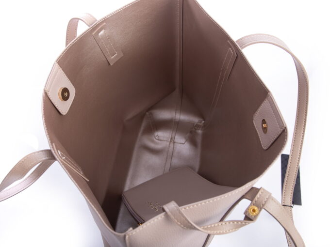 - Pojemna i elegancka shopperka damska w modnym kolorze Taupe – kawa z mlekiem, beż.