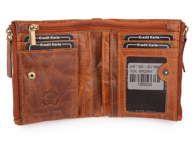 - 2 Przegrody na banknoty, w tym jedna zapinana na zamek błyskawiczny.