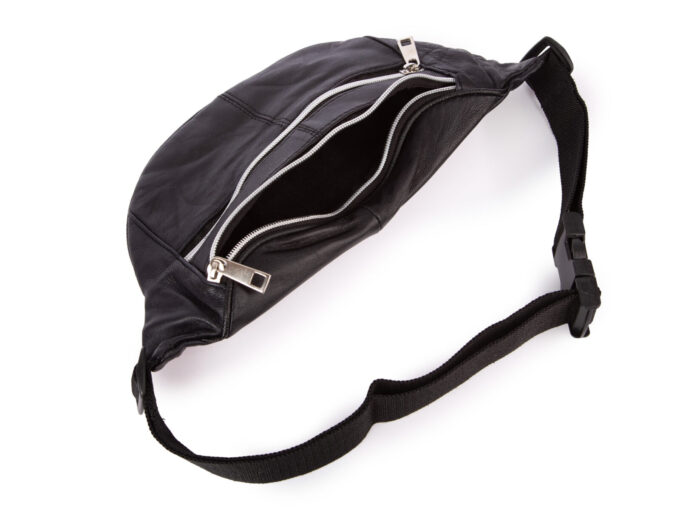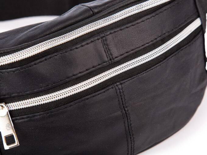 Skórzana saszetka biodrowa w kolorze czarnym z miękkiej skóry naturalnej