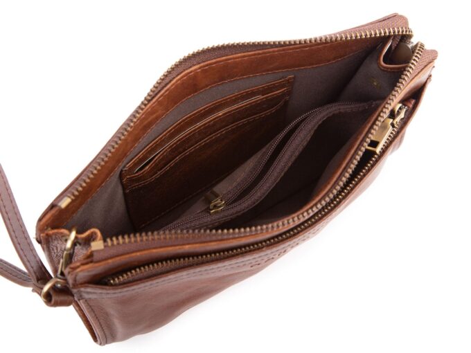 - Wewnątrz saszetki umieszczono dodatkową kieszeń zapinaną na suwak, oraz trzy kieszonki na karty płatnicze.