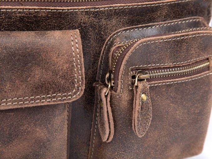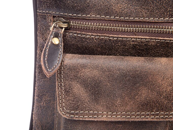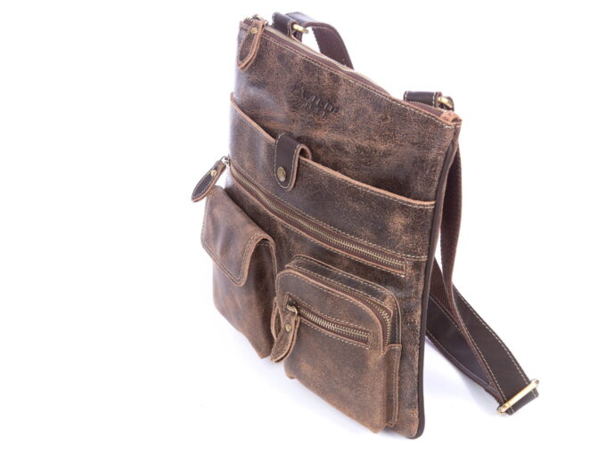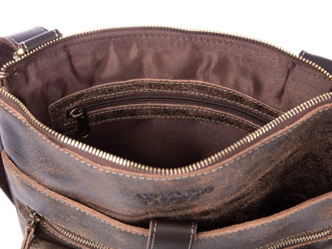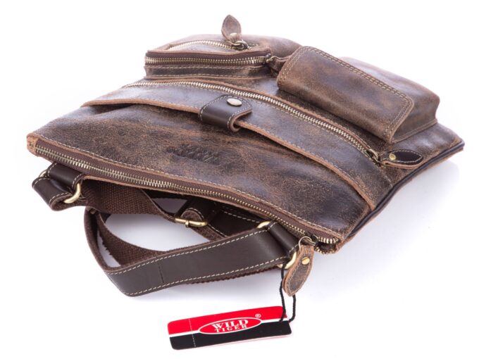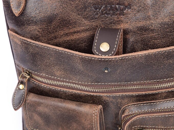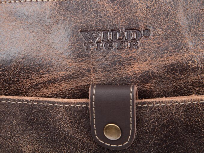 Skórzana torba damska/męska z wieloma kieszonkami Wild Tiger ciemny brąz