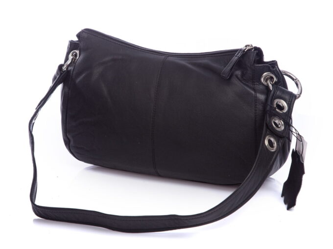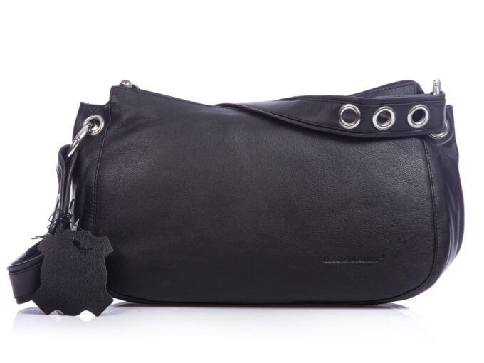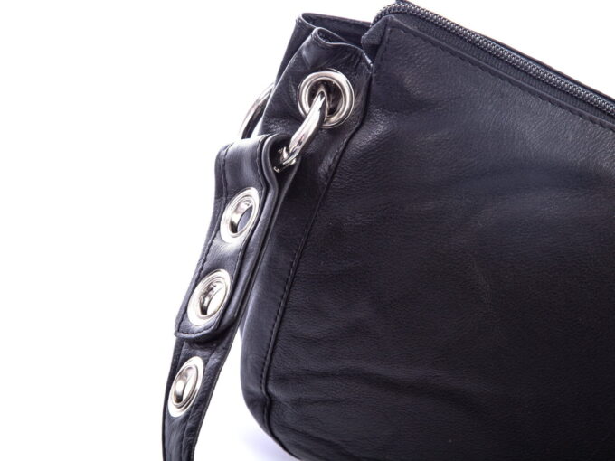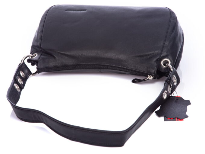 - Torba posiada regulowany pasek na ramię lub do ręki. Również wykonany ze skóry naturlanej z metalowymi, dekoracyjnymi kółkami.