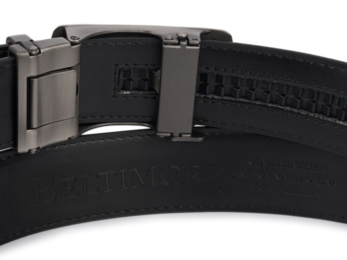 Skórzany pasek męski do spodni czarny ze srebrną klamrą automatyczną 110 cm