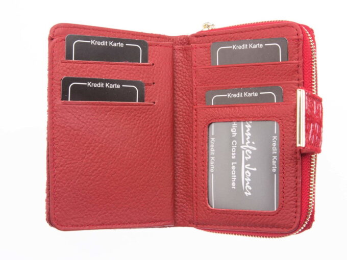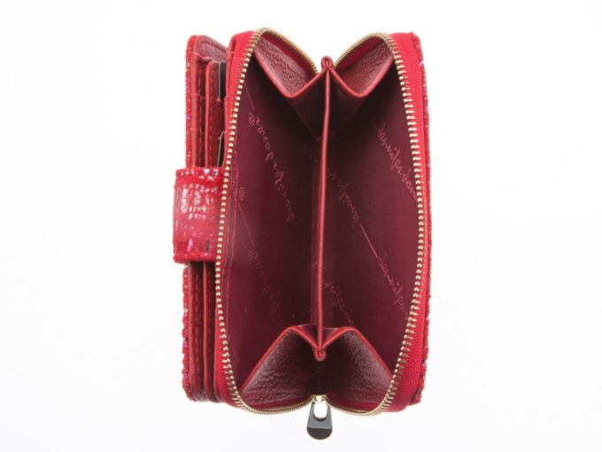- Czerwony portfel damski z brokatem, niemieckiej marki Jennifer Jones,