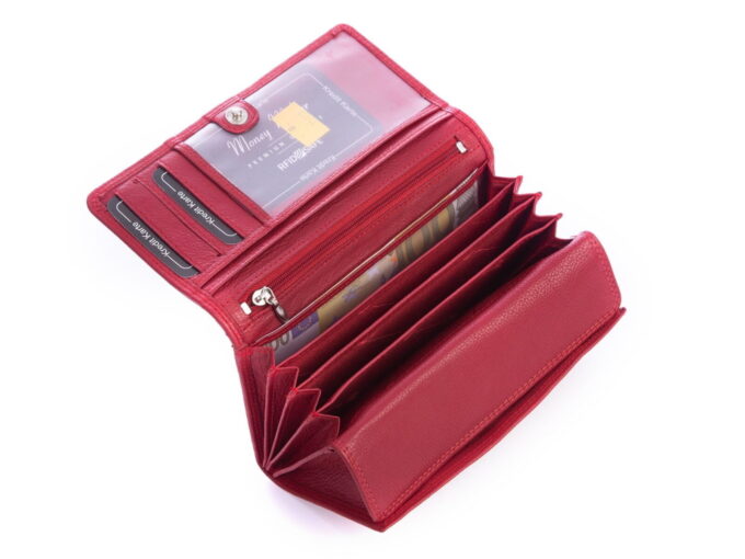 Skórzany portfel damski czerwony Money Maker RFID