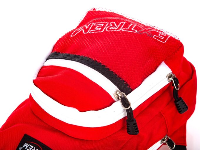 - Z przodu znajdują się dwie dodatkowe kieszenie zapinane na zamki,